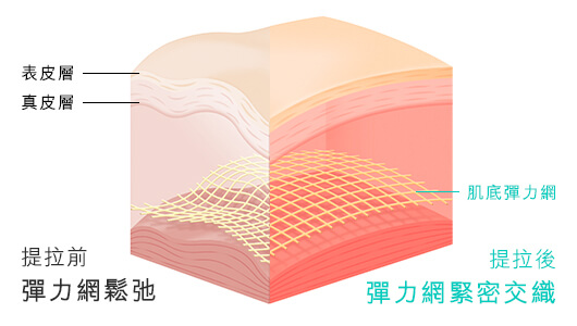 唯有對準彈力網,提升、拉緊,方可對抗鬆垂,修復年輕!